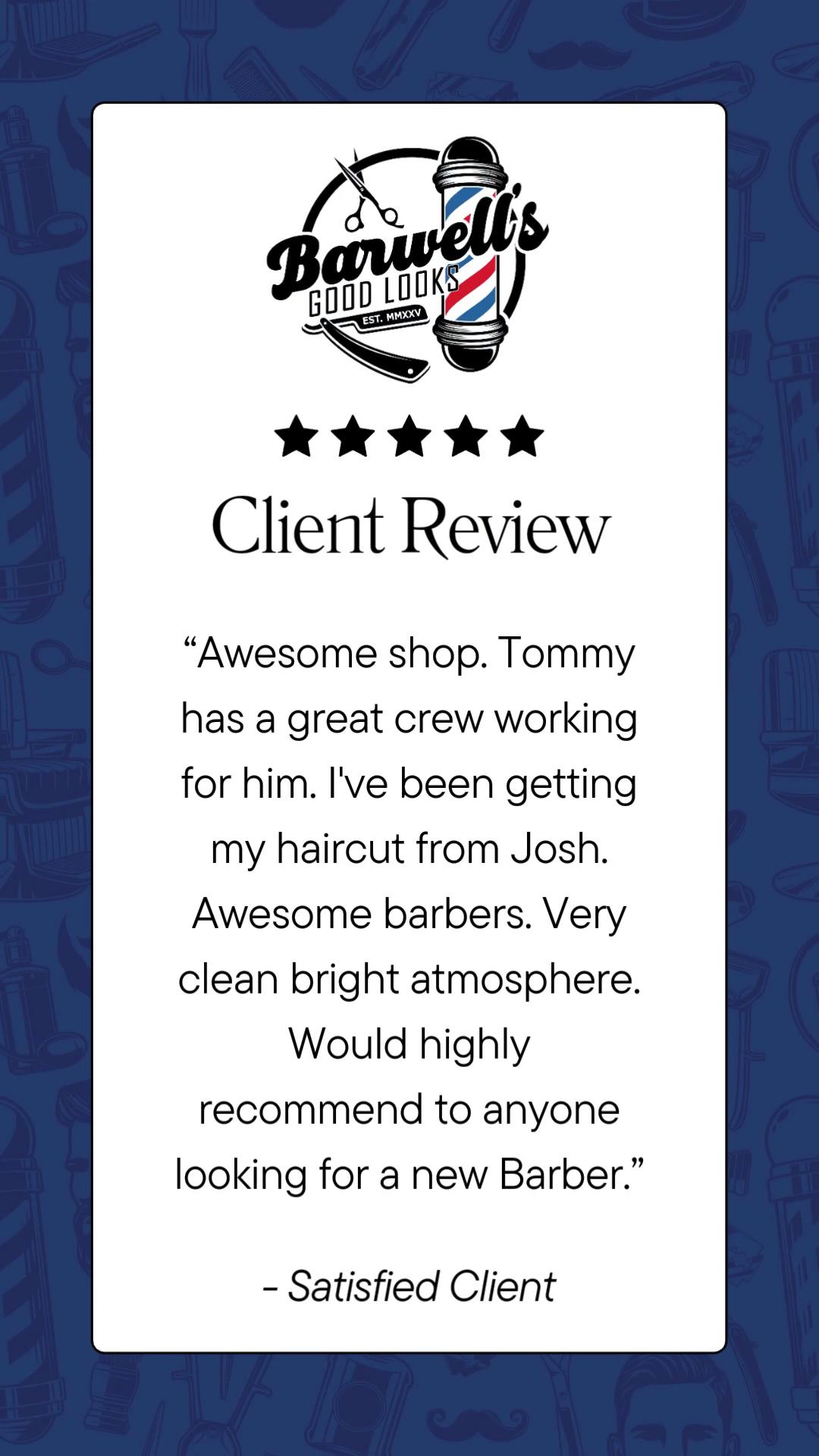 Clean shop, great atmosphere, and a crew that knows what they’re doing. Whether you’re sitting in Tommy’s chair or getting cut by Josh, you’re walking out lookin’ fresh every time.